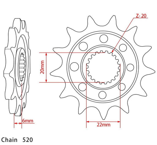 材料类型:钢物品重量: 84g配件:适用于YZ125 YZ250F YZ250FX WR250F加工工艺:锻造设计:轻量化设计齿:13T